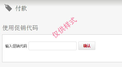 4、在支付页面您需要在使用代金券的框体中输入获得的代金券码并点击确认按钮,若您输入的代金券正确折扣信息会立刻显示。之后请您输入支付信息并以新折扣后的价格支付订单,您将在支付成功后的订单确认页面和稍后发送给您的订单确认邮件中查询最终的支付及折扣情况。