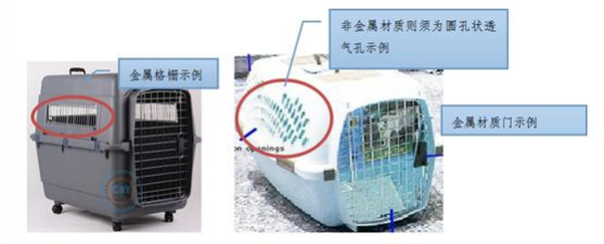 1. Es sollte sich um eine spezielle Transportbox für Haustiere handeln, die aus festem Material hergestellt und oben befestigt sein muss, wobei mindestens drei Seiten belüftet sein müssen, und die Tür muss mit einer Verriegelungsvorrichtung versehen und aus festem Metall hergestellt sein, und die Tür sollte wirksam verhindern, dass Haustiere die Tür öffnen, um zu entkommen, nachdem sie geschlossen ist.