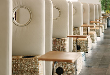 The leisure area offers a private, self-contained space, creating a light and dynamic 360° rotating experience. Ingeniously designed flip-up tabletops and hidden charging interface ensure the most comfortable leisure experience.